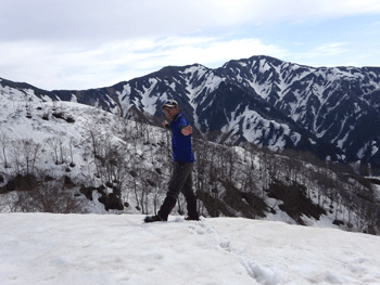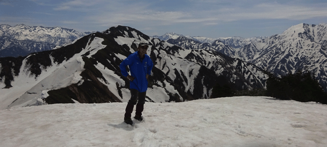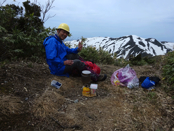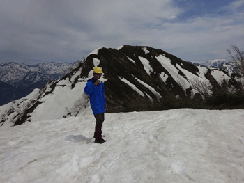 | 毛勝山をバックに僧ヶ岳山頂で・・・ |