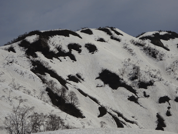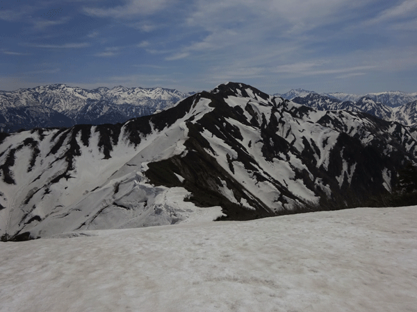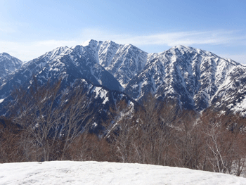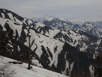 | 成谷山から僧ヶ岳の稜線を望む。 | 今年は雪量が少ないようです。 |