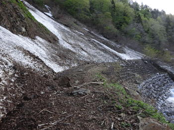 | 片貝山荘から登山口までのデブリが殆どなく楽でした。 | 1時間程で登山口に着きました。 |