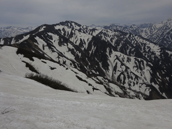 | 鹿島槍ヶ岳などの後立山連峰を望む。 | これから、僧ヶ岳に戻らなければなりません。 |