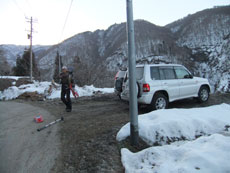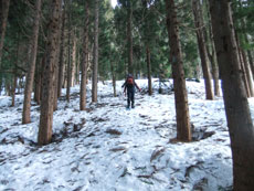 | 車は佐古まで・・・ | 津島神社横から取り付く。 | 取り付きの杉林から急登が始まる。 |