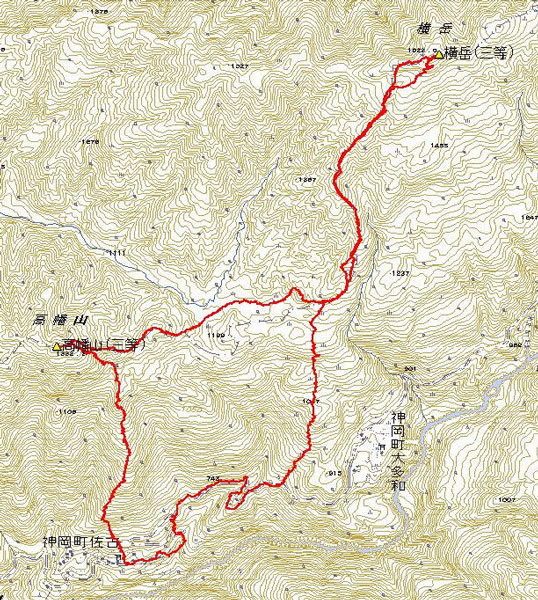 | 佐古→髙幡山→白樺林→横岳→大多和→林道→佐古 |