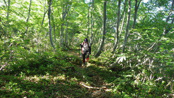 今日は、昨日の疲れも心地よく、寝不足も何のそので、午前5時に我が家を発った。午後から崩れるかもしれないという予報は、ちょっぴり先延ばしされた感じで、全く雨に遭わなかった。好山病諸氏のススダケ採りを山頂で知ったが、それはそれで、仲間が山に親しんでいる事を知り、何だか嬉しくなるのである。