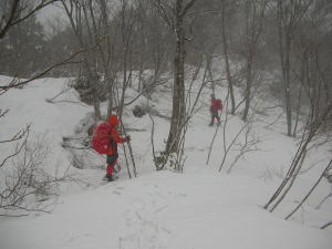 やはり、雪量が少なく、小枝が煩く行く手を遮る。
