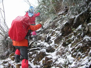 殆ど雪がなく、取り付きの痩せ尾根は、地肌が見えていた。