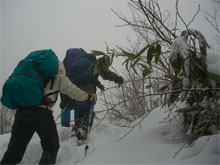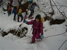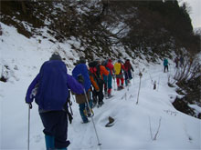 | 鳥越峠からの取り付き。 | 余裕の歩き? | 「もうそろそろ宴会だ。」の声が掛かる。 |