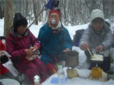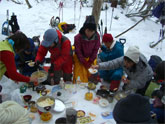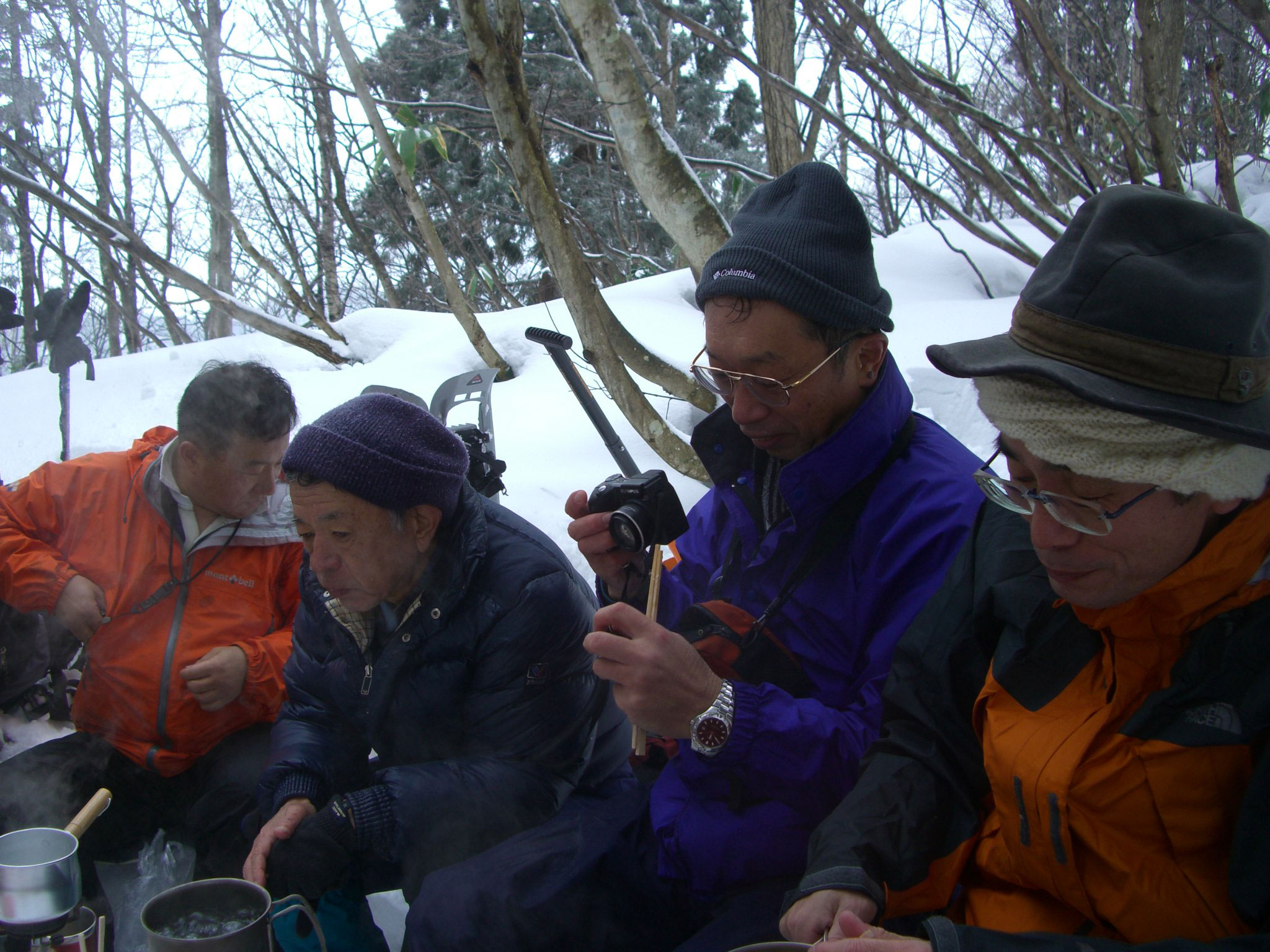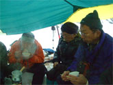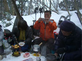| 1000地点で設営が始まる。 | 飲みっぷりのいいシゲキさん | カメラを構えるシュンちゃん | しゅんちゃん・池田氏・H.Fujii氏・花じい |