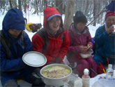 | いつもお鍋のお世話を・・ | 数々のおかずが・・・ | 筏井夫妻(左)と小竹夫妻 | しゅんちゃん・池田氏・H.Fujii氏 |