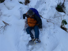 | 二手に分かれた林道に協議となる。 | 信じ込んでの歩きだったが・・ | 困難を極めたが、間違いと分かる。 |