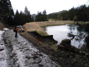 | 骨原(西種)のため池が、スタート地点。 | 長い林道歩きが伴った。 |
