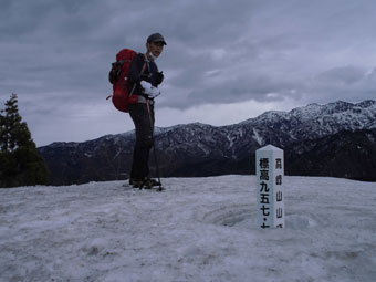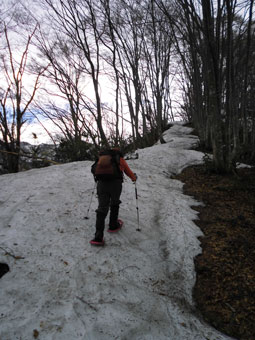 | 稜線に出て・・・ | 稜線には、残雪あり。 |