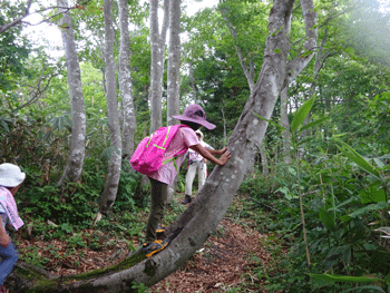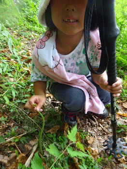 | 倒木が道を塞いでいました。 | ワラビを見付けました。 |