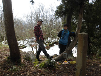 高清水山頂で簡単な食事をする。最高点は、標識のある所より、もう少し奥に・・・