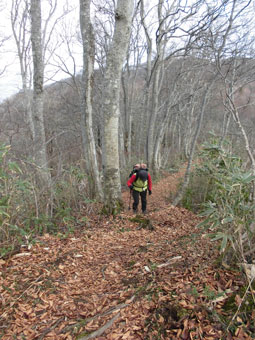 | 高清水山頂へは、オエズコの頭から一旦降りる。 |