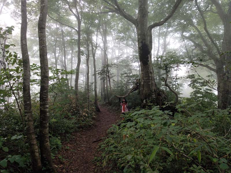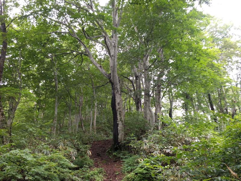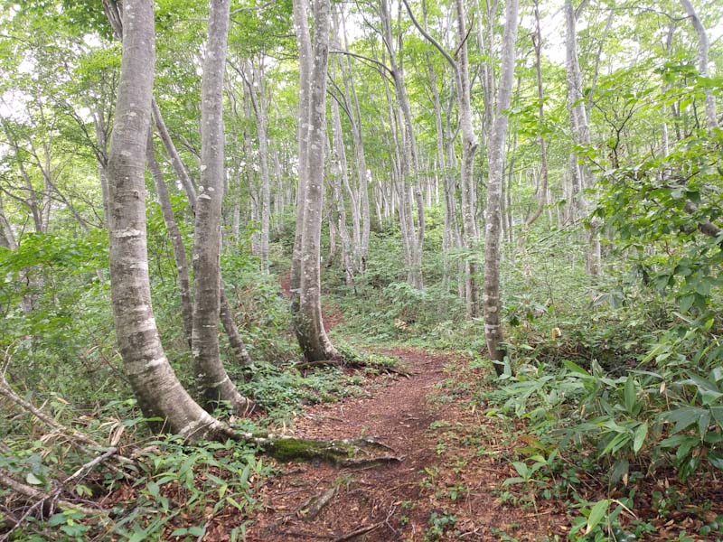 また残雪期などは、高落場山から一気に下り高清水山に行くのも気持ちの良い所でもある。今回私達は軟弱な?ルートを選択したが、この暑いのに、また泥濘んでいるのに、若杉から登ってきた石川県の若者に出会った。やっぱり若いっていいな~。