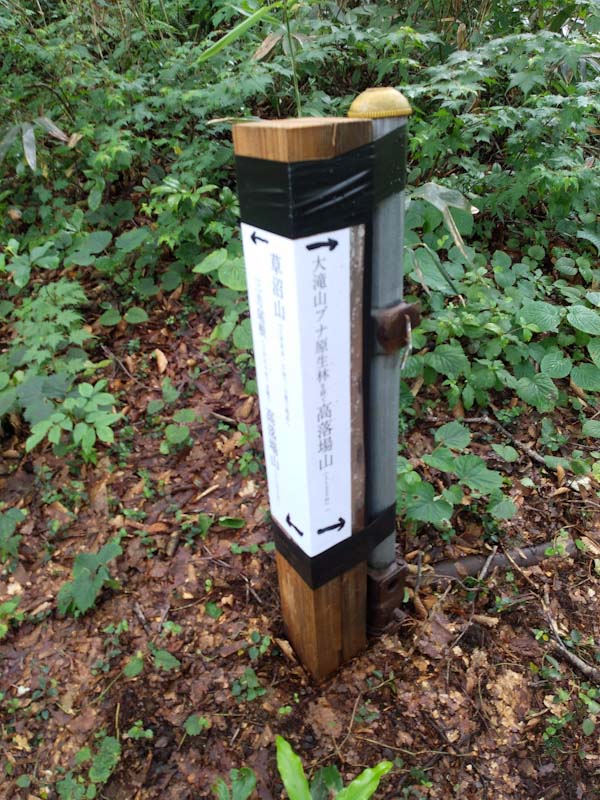 草沼山・ブナ原生林コースとの分岐。 |