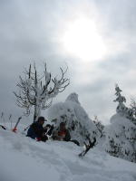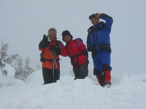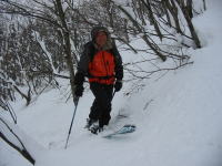 「シュンちゃん」とは、高落場山に何となく縁があり、それも荒れる雪の時ばかりである。平成14年11月4日もその年としては、雪が早く、「若杉」では5cmくらいの積雪だったのに、山頂付近は1m超の積雪で、それも降ったばかりのフワフワの雪のため、ブッシュに悩まされた事を思い出す。山に入れば、年齢も性別も職業も忘れて、「山の話」に没頭する。