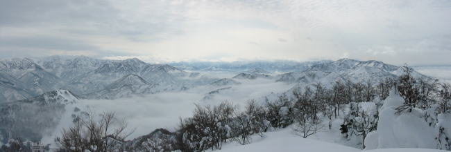 一歩一歩進んだ高落場山頂には、五箇山の山々が雲上に浮かび、何とも口には出しようのない幻想的な光景を見せてくれた。
