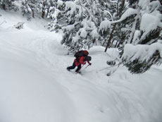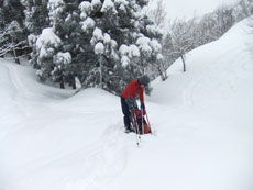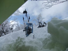 2/27 五箇山に入ると、ビックリするような積雪に降雪。まずは、ブルの運転手さんとの駐車交渉から始まった。週末のトレースの上に、10~20cmくらいの降雪があり、ルートファインディングには全く問題なく効率良く歩く事が出来た。