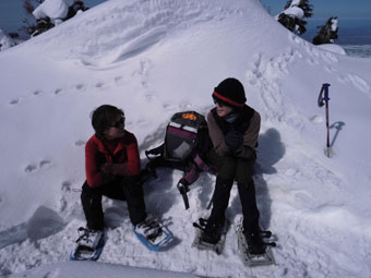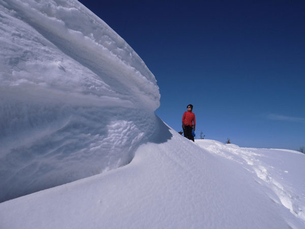 | 山頂付近の小さな雪庇下から・・・・ |