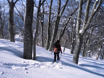 | 高清水山への分岐付近のブナ林の中を・・・ |