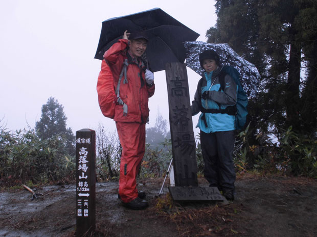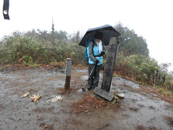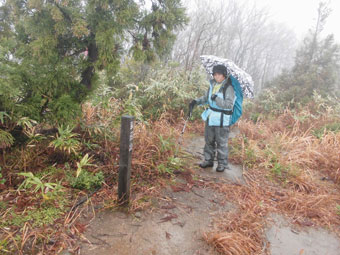 雨の中の山頂で・・・ 朴峠側に少し降りてみたが、すぐに戻ろうとなってしまった。