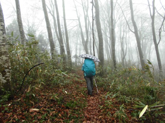 しかし、ブナから滴り落ちる雨や、シーンとするブナ林の中を歩くのは、「静かな山」を求める者にとって格好な場所でもある。そして、私のいうところの「山の空気」を、胸一杯吸う事が出来るのである。