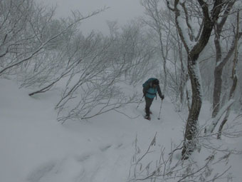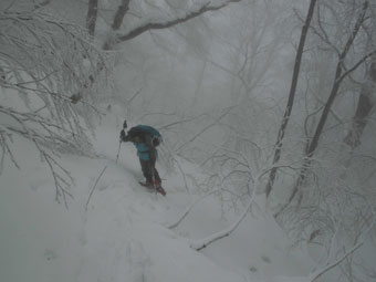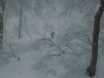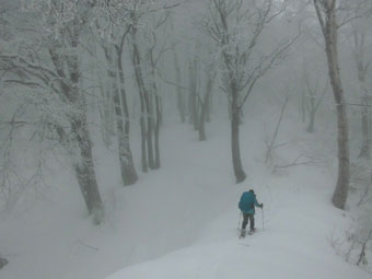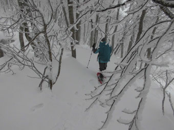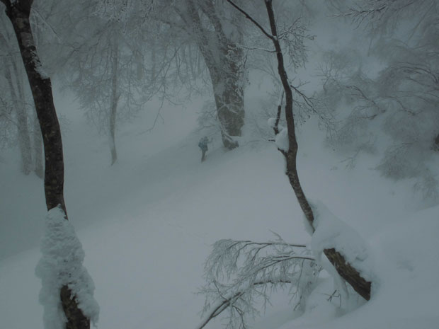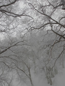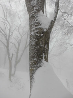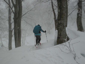 雪舞う中、ブナ林を行く。誰もいない静かな山は、凄く神秘的に思えた。