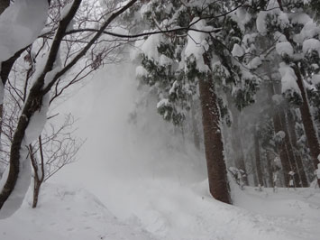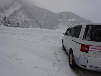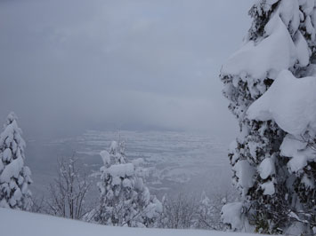 時折、平野部が見えたが、すぐに雪が舞った。 |