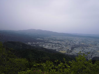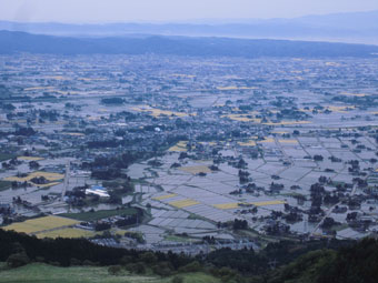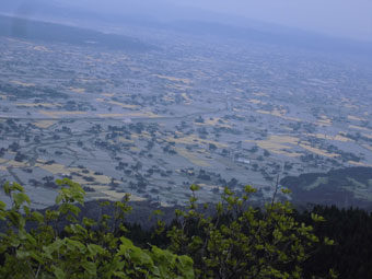 | 駐車場から、砺波平野の散居村を眺める。 |