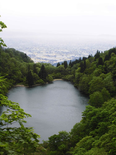 | 縄ケ池と散居村を見下ろす。 |
