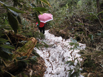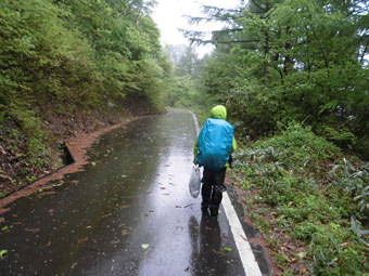 雨の中の林道歩き。 |