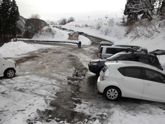 | 平スキー場には大勢のスキー客が押し寄せていた | 林道の積雪は、約50cm。 |