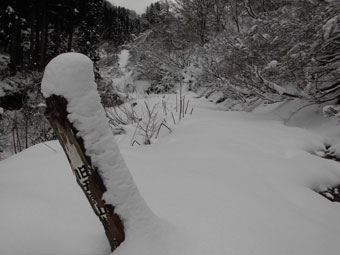 | この標識が取り付きと勝手に思い込んでいた。 | 流石、五箇山、雪は深かった。 |