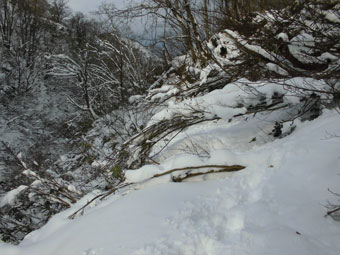 | イヤになるくらい樹木が倒れている。 | 鹿熊峠。全く見当違いの所に来たと まだ気付いていなかった。 |