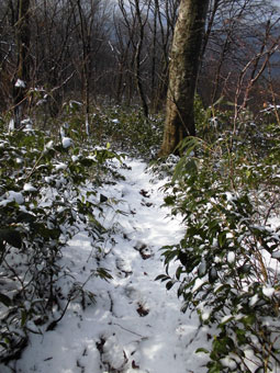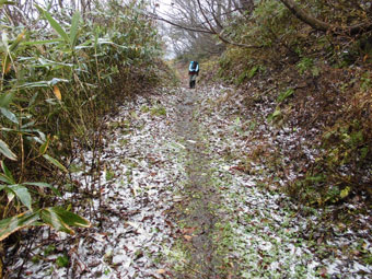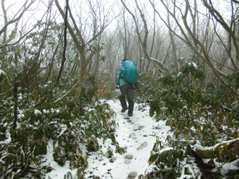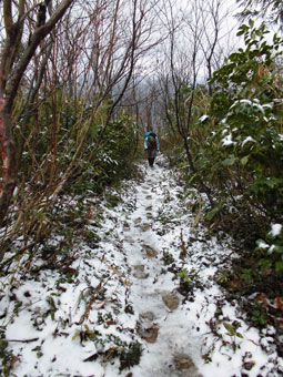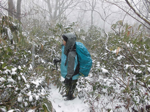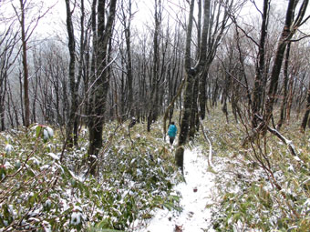 | 時間がないので山頂を放棄。 | 下山に掛かる頃、雪が止んだ。 |