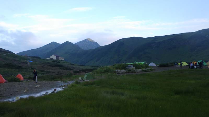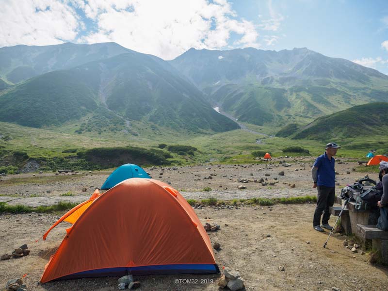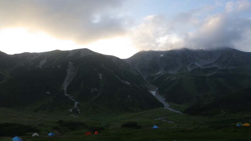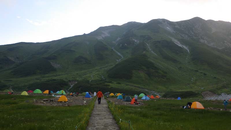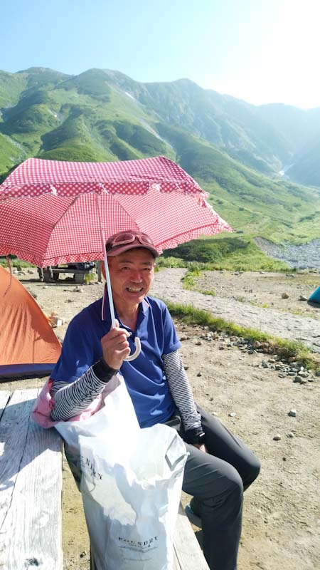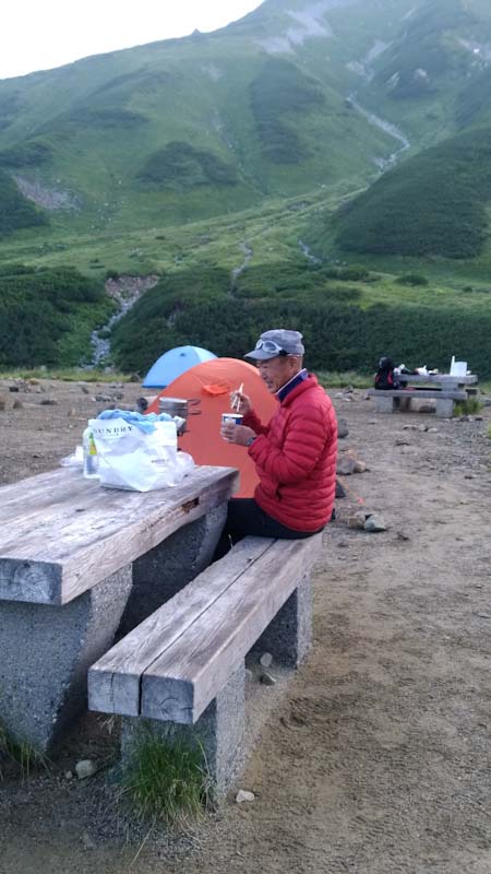 私のテントとテーブルを挟んで2つのテントがあった。昨日、剱岳を登られ、その日の内に室堂まで行けたのであるが、アクセクするのもどうなんだろうと、剱沢のテントを撤収され雷鳥沢で再び設営されたようであった。
