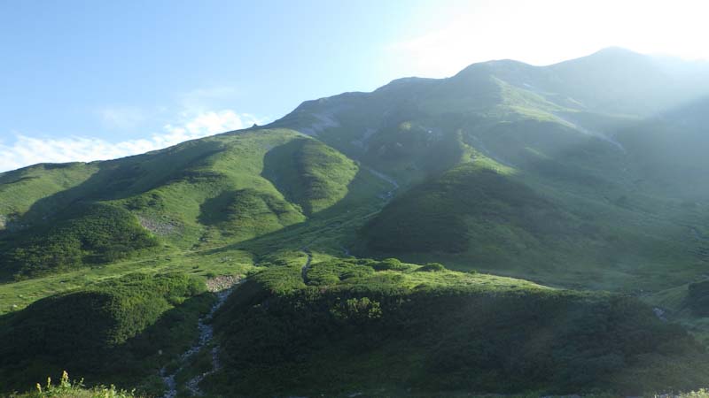 雷鳥沢4:40=別山乗越(6:15~20)=別山6:45=北峰(6:50~7:05)=真砂岳7:55=富士の折立(8:35~50)=大汝山(9:00~10)=雄山(9:25~35)=一ノ越10:10=浄土山(10:45~11:25)=一ノ越10:45=雷鳥沢!2:50
