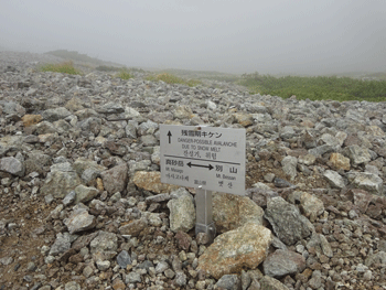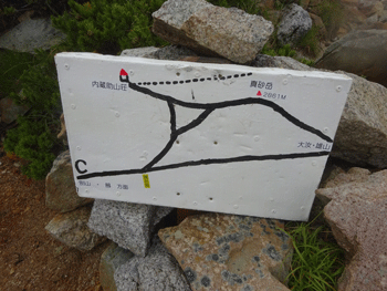 | 内蔵助山荘と真砂岳、そして、巻道の表示。 |