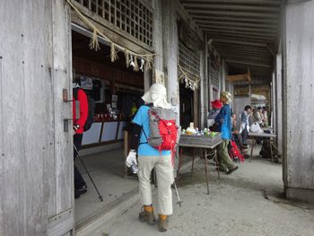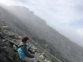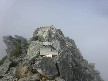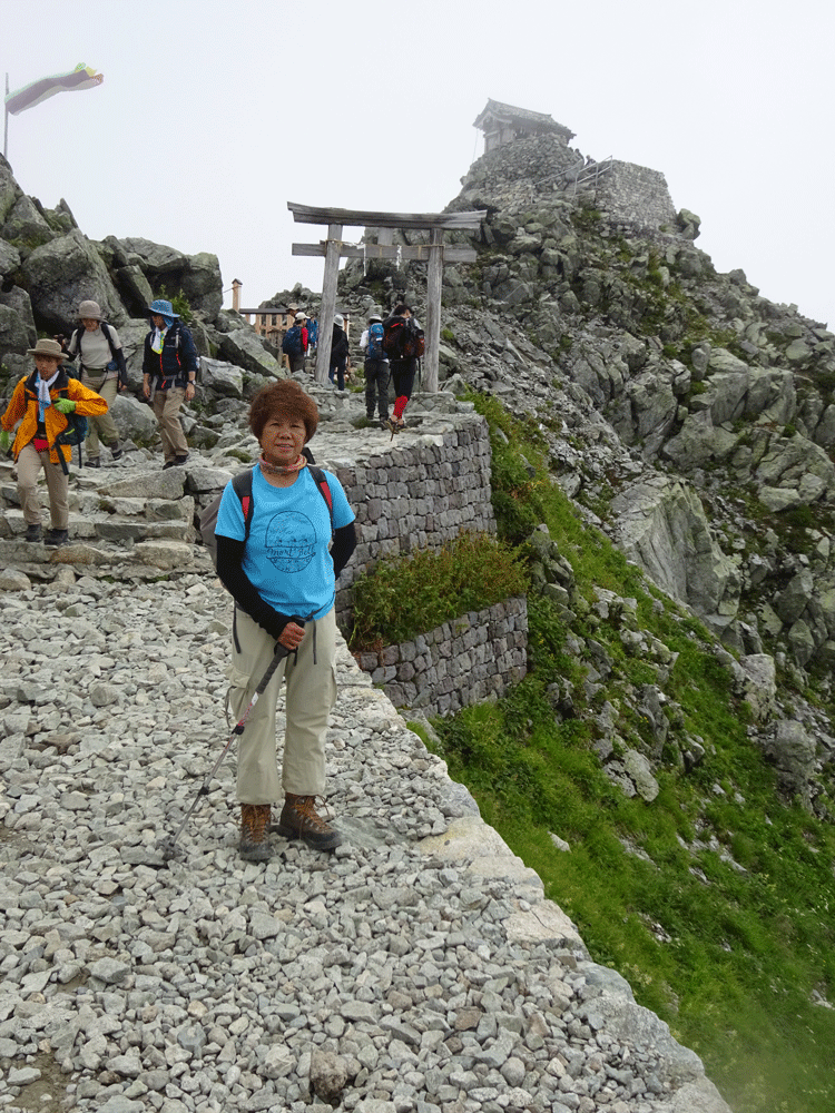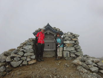 | 別山の祠前で。全く視界なし。風も有り。 |