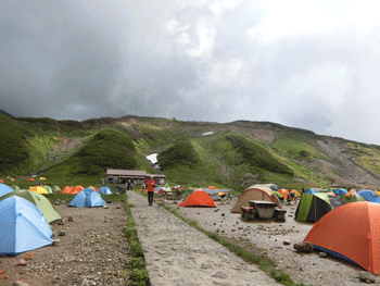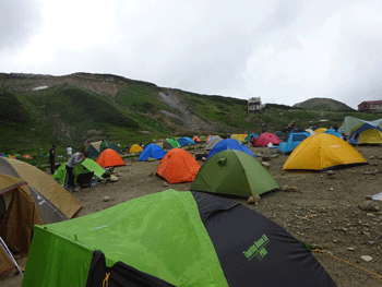 まだ完全に夜が明けぬ雷鳥沢のテン場。 |