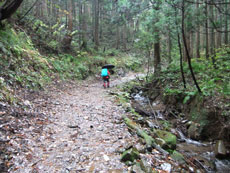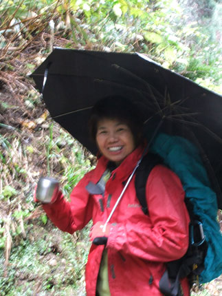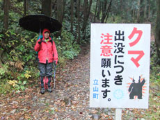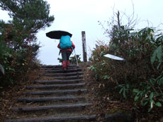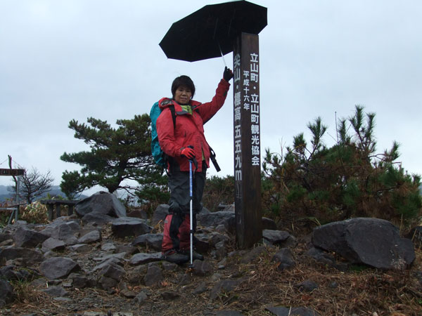 「尖山は、往復1時間も掛からないよ。」 と言ったが、山ノ神は「往路でも1時間は掛かる。」 と譲らなかった。また、我が家からの出遅れや、途中の所用をこなしていたら、登山口発が午後1時半になってしまった。そして、雨中の傘差し山行は予定の中で、樹木に取り付けてある解説を読みながらの歩きであっても、差程時間は掛からない。「意外と早いね。(時間が掛からないね。)」 と読みが違いの山頂到達であっても、「山ノ神」 は、お山のてっぺんで満足感を漂わせていた。 午後3時半には、吉峰温泉の湯の中に浸るというスケジュール通りで、その夜は、愉快な仲間達と楽しく騒いだ。