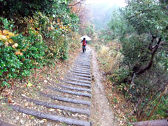 疑似木の階段は意外と歩きにくい。