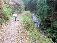 10分も歩かない内に林道へ・・・