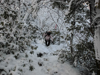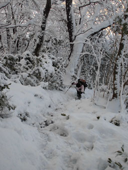 | 始めは、歩き易く感じます。 | 雪量も、チョッピリ多いような・・ |