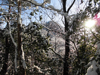| 木々の間から、山頂が望めました。 | 夏椿峠の標識。 |