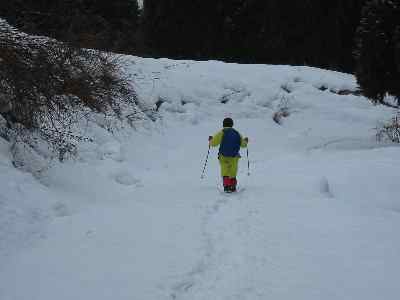 帰路も順調に下り、一部違ったトレースを辿り、小屋の横に出たが、林道に出れば、車デボ地点まで10分位であった。