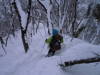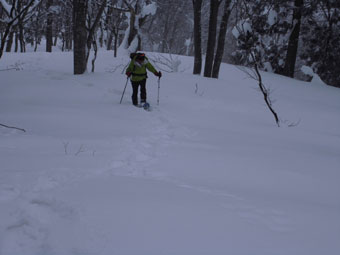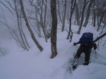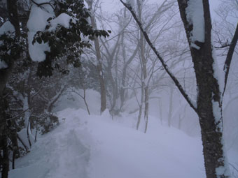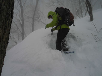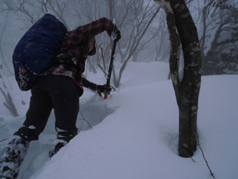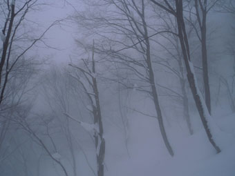 | 「山ノ神」が応援しようとしたが全くダメ! | 13:50頃、ようやく穏やかになったが、時間的には とても山頂には行けないと諦めて食事処を探す。 |