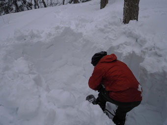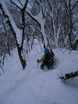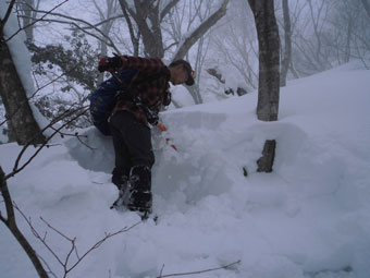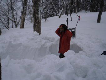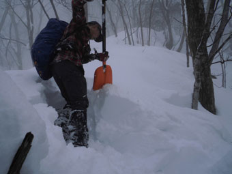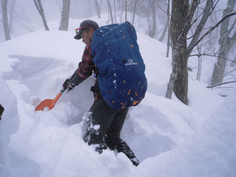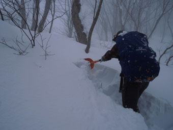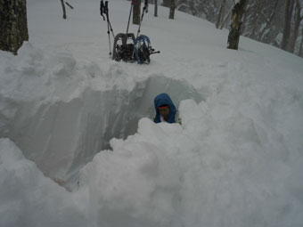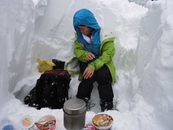 | カップ麺であったが、温かくて美味しかった。 | 風が気にならないように深く掘った。 |