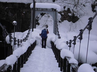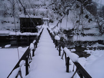 | 発電所近くに車をデボ。 | 発電所構内から吊り橋を渡る。 |